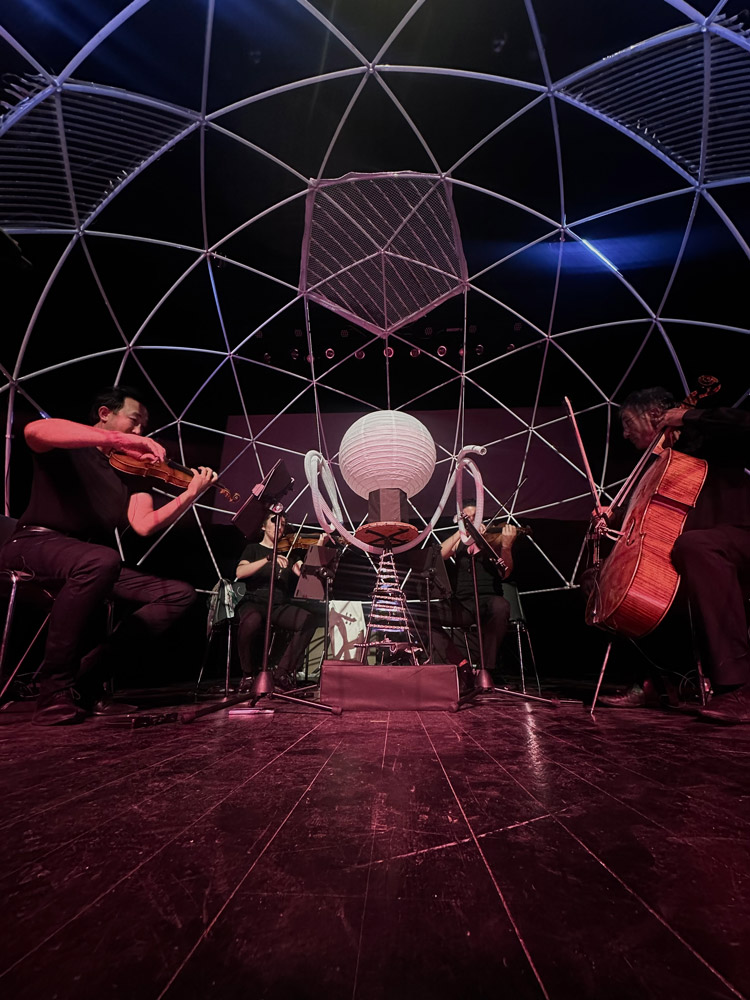 Inspiré par Emmanuel Bigand, ce cabaret scientifique mêle science et musique : un quatuor à cordes et une chanteuse guident le public à travers les zones cérébrales activées par la musique, dans un voyage fascinant entre sons et neurones.